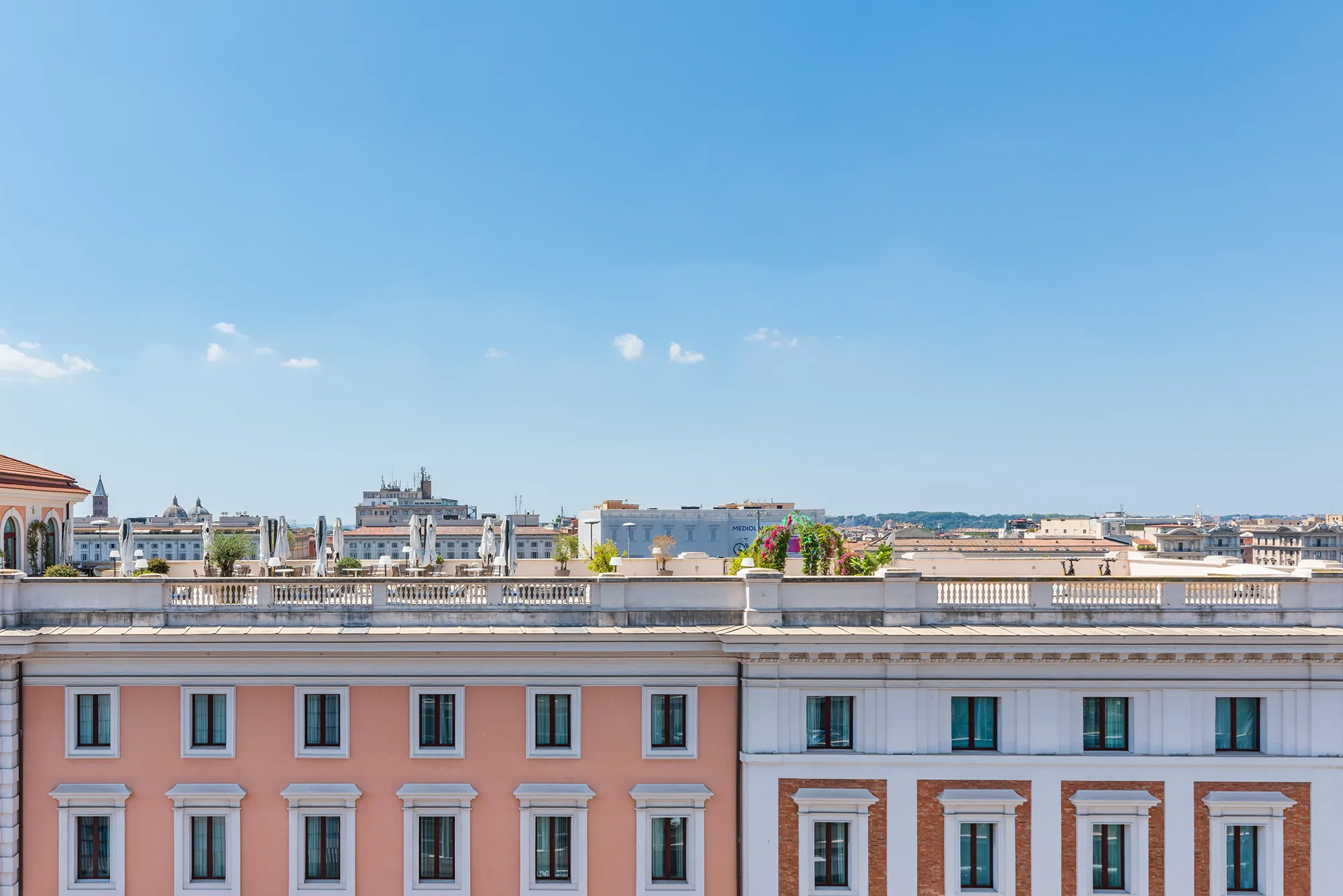 Bright and spacious with a floor area of 35 square meters, they consist of a sleeping area with a double bed, a living area with a sofa, a bathroom with a bathtub and shower, and a large private balcony from which to enjoy a magnificent view of Rome.