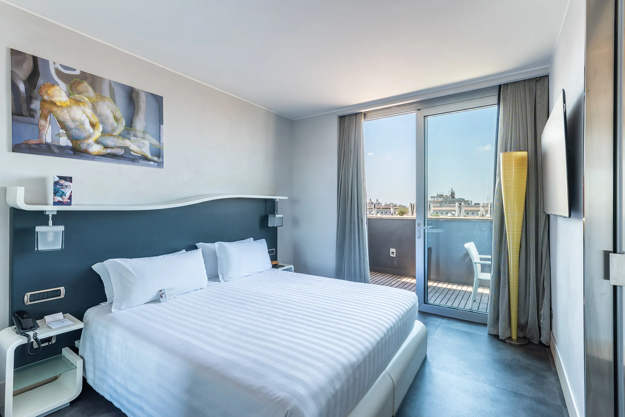 The Comfort Room is bright, welcoming, and furnished in a modern style: with a minimum size of 22 square meters, it is the ideal solution for a business trip or vacation in Rome. Available as a double room (with two comfortable separate beds), a double room with a large king-size bed, or a triple room with a double bed and a single bed.